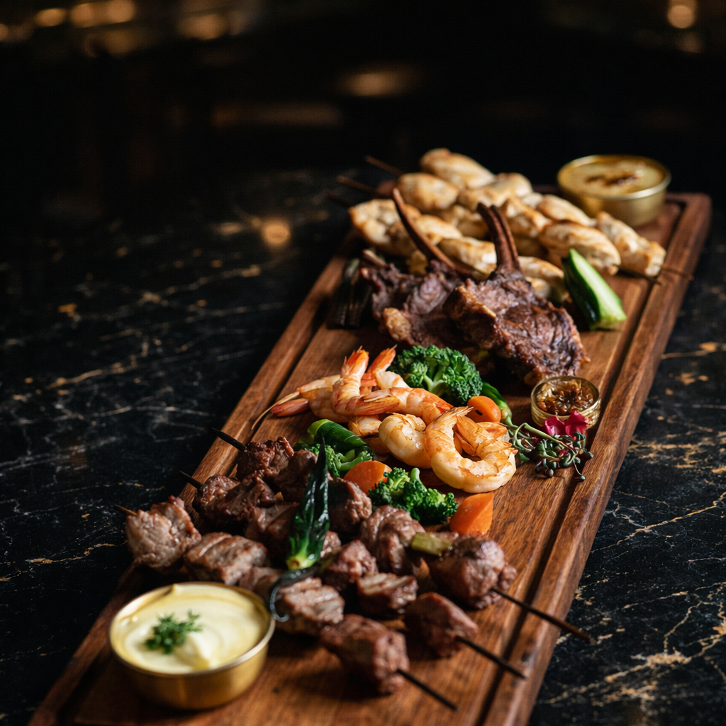 Tender beef skewers marinated in herbs and spices, grilled to perfection